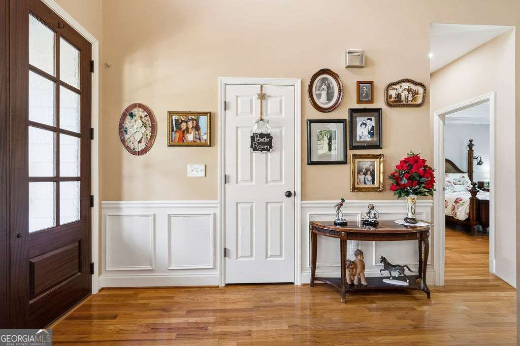Tucked away on nearly an acre with a peaceful wooded backdrop, this Bentwater home feels like your own private retreat-where everyday living meets a little bit of magic. From the moment you step inside, the home opens up around you. Sunlight pours into the soaring two-story living room, where a warm gas log fireplace invites you to slow down and stay awhile. Just off the living space, the dining room's picture windows frame the manicured front lawn like artwork, creating the perfect setting for everything from quiet mornings to holiday gatherings. The kitchen is ready for real life-updated with a 5-burner gas stove, new microwave, upgraded lighting, and thoughtful touches that make cooking and gathering easy. Step outside onto the expanded deck, where ceiling fans keep the air moving as you look out over lush gardens below. Follow the stairs down and you'll discover a backyard designed to be enjoyed-layered, private, and peaceful. The oversized primary suite offers a true place to unwind, with its high trey ceiling, soaking tub, separate shower, and a generous walk-in closet. Upstairs, three spacious bedrooms overlook the living room below, creating a sense of connection while still giving everyone their own space. Downstairs is where this home really comes to life. The fully finished basement is made for memory-making, featuring a full-sized custom-built cherry wood wet bar, a large den with pool table and stacked stone accent wall, and plenty of room to relax, entertain, or host overnight guests. Step outside to the stamped concrete patio, where the hot tub, fountain, and surrounding landscape create a setting that feels more like a getaway than a backyard. Evenings here are something special-gather around the fire pit, enjoy the quiet of the wooded backdrop, or simply sit under the deck with the soft glow of lighting and the comfort of overhead fans. Every inch of the outdoor space has been designed to be lived in and enjoyed year-round. Behind the scenes, the home has been thoughtfully upgraded and includes 8 zone irrigation system, outdoor lighting for all walkways & around the patio, three HVAC systems, whole-house surge protection, hot water recirculation, Aprilaire filtration for the main & upstairs HVAC, smart garage technology, and more-giving you comfort, efficiency, and peace of mind. With its blend of thoughtful upgrades, inviting spaces, and private natural setting, this is more than just a house-it's a place to settle in, spread out, and truly feel at home.